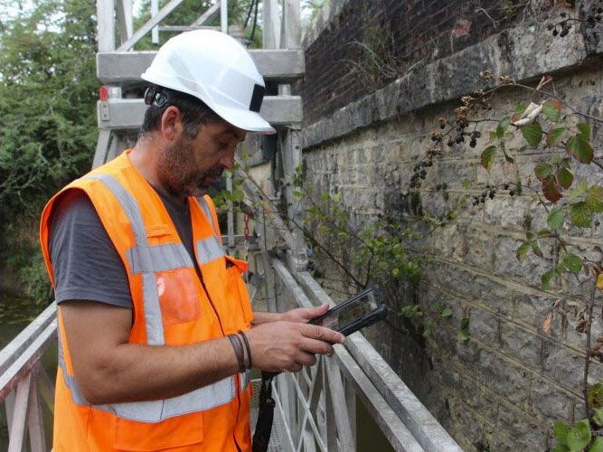 Installé sur une passerelle négative qu'il peut descendre jusqu'au niveau de l'eau, Marco observe méticuleusement les fondations. Cet employé d'une entreprise d'ingenterie est un habitue. Au niveau des fissures, il installe des fissuromètres sur lesquels il note la date et la taille de la fente. Une bandelette extensible permettra de mesurer l'évolution à la prochaine inspection « L'avantage de ces outils, c'est qu'ils sont observables depuis la berge avec des jumelles, précise Jean-Henri Duquet Sur la nacelle, Marco manipule un seau rempli de plâtre. Il n'a évidemment pas vocation à colmater les brèches. On s'en sert comme témoin, en complément du fissuromètre, si le pont bouge, le plâtre va se casser et on pourra mesurer la fissure avec une grande précision», explique le professionnel. L'inspection minutieuse de l'ouvrage peut lui prendre une demi-journée de travail.